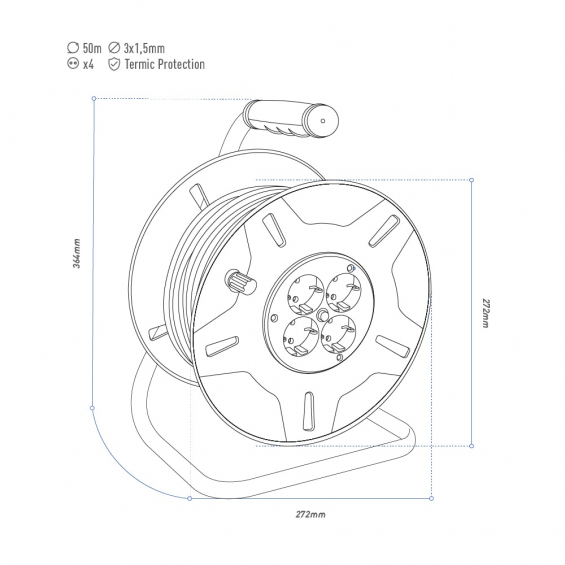 Enrollacables con protector térmico 3x1,5mm 50m 4 tomas 230 v 16 a ip20