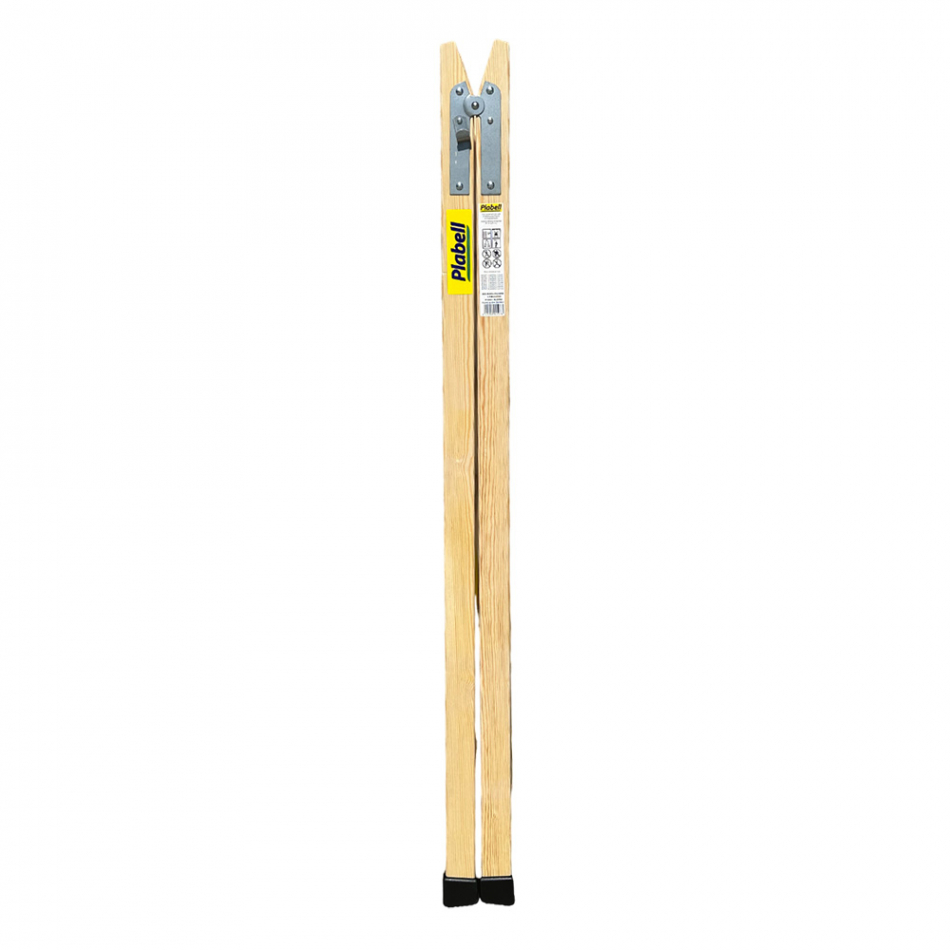Escalera de madera peldaños anchos 190cm alto bld-7 plabell. especial para pintores y electricistas, de uso exclusivo en tijera y de doble subida. con peldaños anchos, de 6cm, y montantes de sección piramidal sobre su anchura total, alargada progresivamente de arriba hacia la base. en la parte superior, además del sistema anti apertura, los peldaños conforman un tipo de estructura para acoger todo tipo de materiales y recipientes. para asegurarse de la estabiliad de la escalera, se quipa también con tacos de goma antideslizantes y cinta antiapertura. medidas: 190x31/58cm. nº peldaños: 7+7. peso escalera: 7kg. garantía 2 años. normativa eu en 131-1-2.