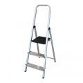 Escalera doméstica de aluminio 3 peldaños. medidas plegada: 41 x 10,5 x 126 cm. altura del último peldaño 58 cm. peso de la escalera: 2,8 kg. peso maximo: 150 kg