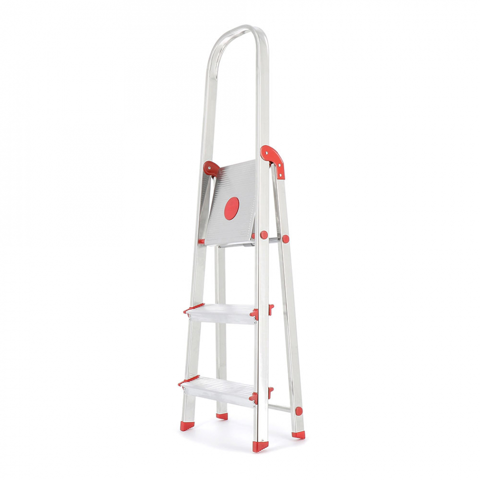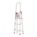 Escalera de 3 peldaños, de aluminio. arco de apoyo con altura de seguridad de 60 cm, peldaños antideslizantes y con sistemas de puntos fuertes. rellano con sistema de seguridad y amplia superficie de apoyo. resistencia de carga: 150 kg. altura máxima: 59 cm (hasta plataforma), altura alcanzable 2,59 m. escalera certificada por aenor según norma europea en-131. dimensiones: 41,3 x 11,5 x 128 cm