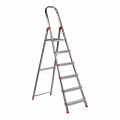 Escalera de 6 peldaños, de aluminio. arco de apoyo con altura de seguridad de 60 cm, peldaños antideslizantes y con sistemas de puntos fuertes, rellano con sistema de seguridad y amplia superficie de apoyo. resistencia de carga: 150 kg. altura máxima: 122 cm (hasta plataforma), altura alcanzable: 3,22 m. escalera certificada por aenor según norma europea en-131. dimensiones: 49,1 x 11,5 x 198 cm