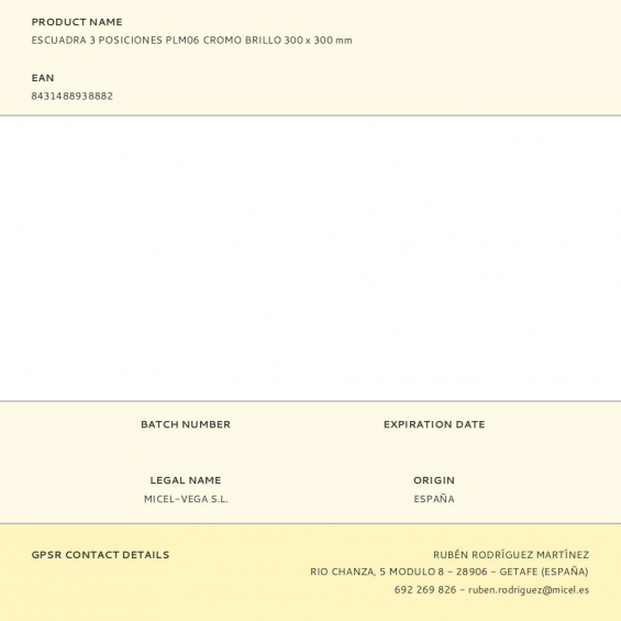 Fabricante:   Micel    P/N:      EAN:  8431488938882    Código:  367697
