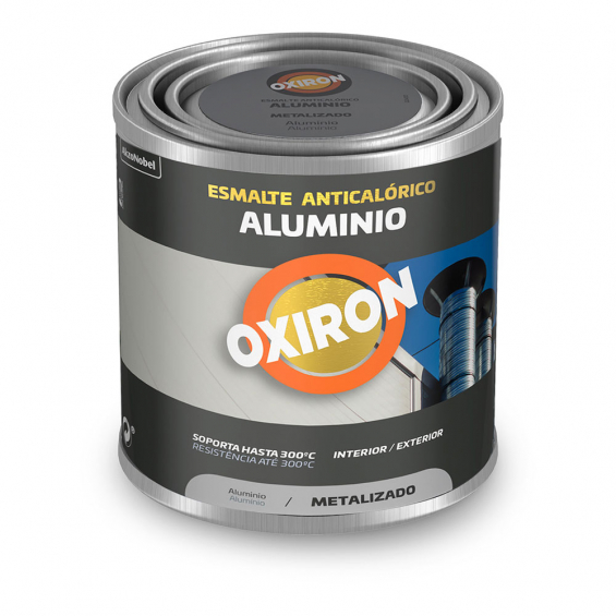 Esmalte aluminio metalizado anticalorico 0,250 l. oxiron resistente a altas temperaturas hasta 300º c. fácil extensibilidad y larga duración. interior - exterior. especial para superficies metálicas que tengan que estar sometidas a altas temperaturas como: chimeneas, estufas, calderas, elementos de calefacción, etc, tiempo de secado 6 horas, repintado 16 horas