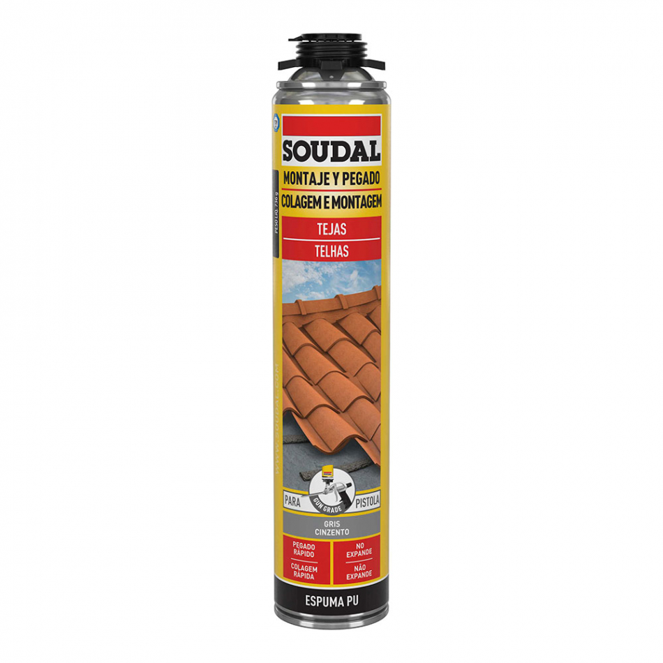 Espuma para teja pistola gris 750 ml. espuma adhesiva de baja expasión para el pegado rápido de tejas o paneles de tejado sobre soportes como hormigon, ladrillos, metal, madera, chapas de aislamiento o pvc. resiste al hielo, al calor y a las acciones del viento.