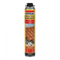 Espuma para teja pistola roja 750 ml. espuma adhesiva de baja expasión para el pegado rápido de tejas o paneles de tejado sobre soportes como hormigon, ladrillos, metal, madera, chapas de aislamiento o pvc. resiste al hielo, al calor y a las acciones del viento.