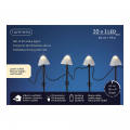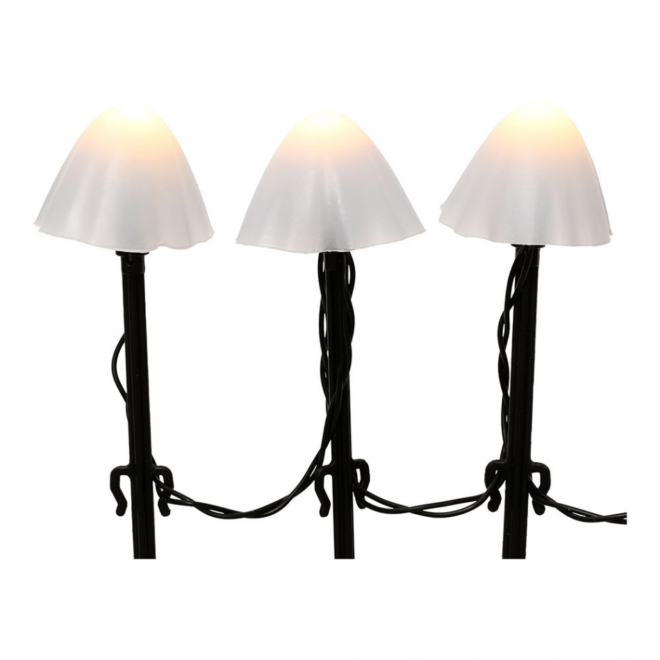 Estaca led con forma de seta con 8 funciones para exterior 491762 juego de 20 unidades con pinzas. cable de color negro , distancia entre estacas 20cm. 8 funciones de destello. color del led: blanco cálido. tamaño del led: 5mm. longitud del cable de conexión 30cm. número de baterías 3. número de bombillas 20. tipo de alimentación batería.temporizador: 6 horas. tipo de batería aa. horas de funcionamiento 48 horas