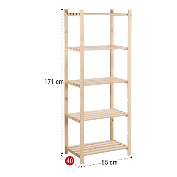 Estanteria alistonada natura 5 baldas fondo astigarraga. medidas: 171x65x40cm y 16mm de grosor.