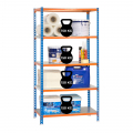 Estanteríametálicasintornillosdecolorazul/naranja/galvaconcapacidaddecargaporestantede180kg.elnúmerodeestanteses5ylasmedidas(altoxanchoxfondo)son2000x1000x500mm.laúnicaestanteríaquepermiteponerlas bandejasentresposicionesdiferentes.productoespañol,calidadeuropea,medidasenusodelproducto:1975x1100x510mm