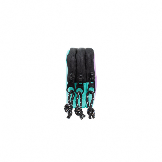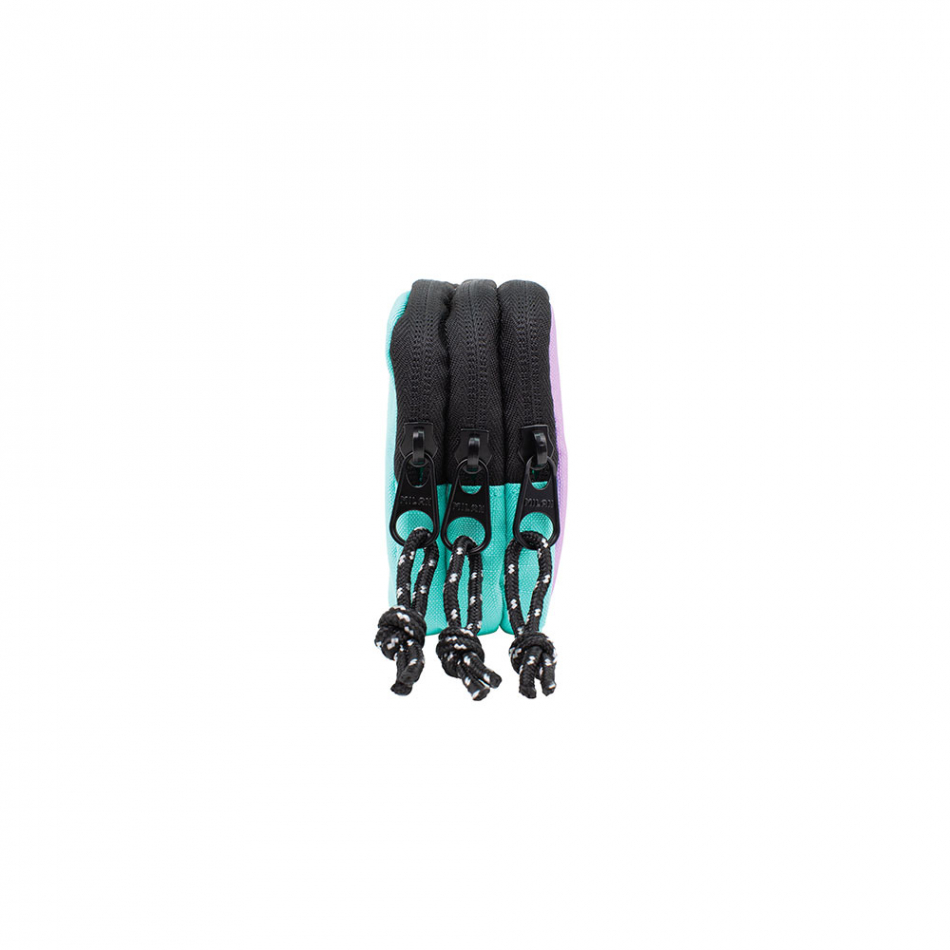 Estuchecon 3 cremalleras sunset, verde-lila milan .estuche portatodo con 3 amplios compartimentos que permiten organizar y repartir el contenido. serie sunset, color verde. una combinación de colores degradados inspirados en el atardecer, acompañados de detalles en blanco y negro. tiradores de las cremalleras con cuerda. tejido exterior 'ripstop': ligero y resistente a la rotura y rasgaduras. utiliza una técnica especial que teje hilos gruesos de refuerzo a intervalos regulares en un patrón entrecruzado. composición tejido: exterior y forro interior de poliéster. medidas: 22x11x6,5cm.