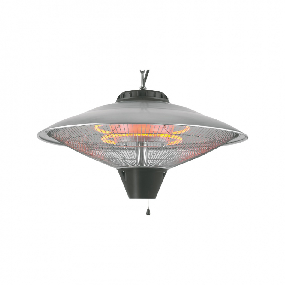Estufa de cuarzo de exterior para techo 3 niveles de potencia: 900-1200-2100w protector de sobrecalentamiento - indice de proteccion ip24 - rejilla de seguridad - apertura de 365° - orientable de 0 a 45° - hasta 3m de alcance - interruptor y selector de potencias por tirador - dimensiones: ø56,5x30cm (diametro/altura) - 240-240v 50hz edm