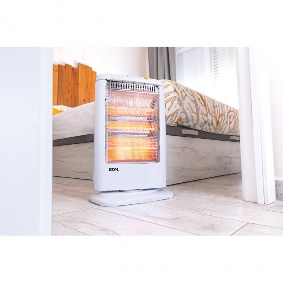 Estufa de cuarzo - modelo economico - oscilante - sistema de seguridad anti-vuelco - con 3 barras de cuarzo - emision instantanea de calor - reflector protegido - base antideslizante. rejilla de seguridad - protector de sobrecalentamiento - recambio tubo: ref. 00128 - 3 niveles de potencia - 400-800-1200w - dimensiones: 33x23x48cm (ancho/fondo/alto) - 240-240v - edm