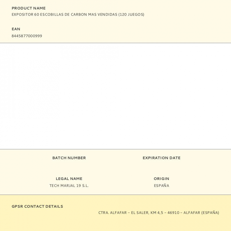 Expositor 60 escobillas de carbon mas vendidas (120 juegos). más información: https://grafitosmarjal.com/