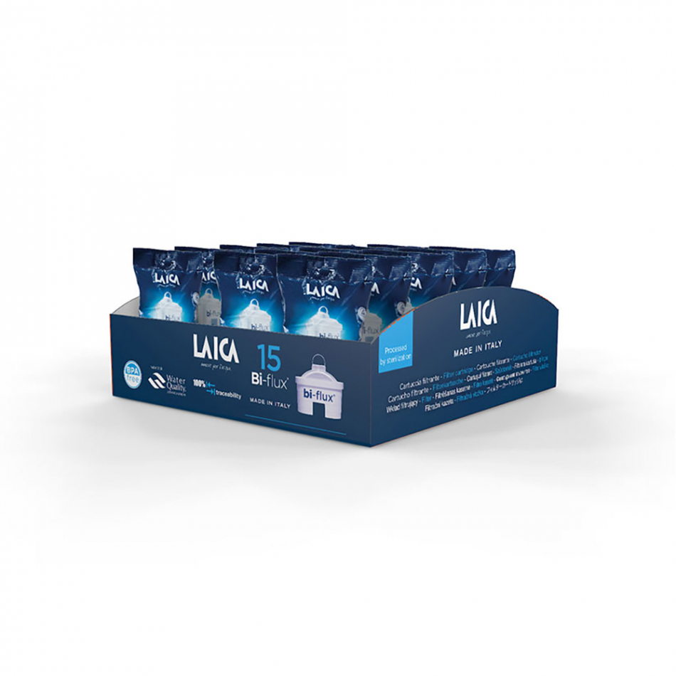 Expositor de 15 filtros bi-flux individuales. equivale a 1 mes de agua filtrada (máx 150 l)