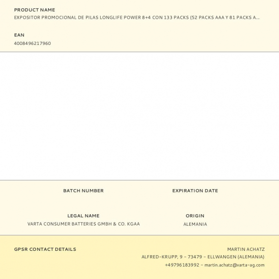 Expositor promocional de pilas longlife power 8+4 con 133 packs (52 packs aaa y 81 packs aa)