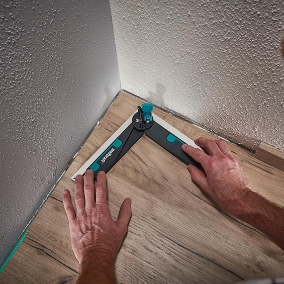 Falsa escuadra para sierras ingletadoras 6957000 wolfcraft falsa escuadra wolfcraft para sierras ingletadoras: medición precisa de ángulos y transferencia a la sierra. ajuste fácil con palanca excéntrica y imanes. bisectriz automática para cortes de inglete perfectos. brazos telescópicos para mediciones cómodas. tope desplegable para marcar ángulos directamente en la pieza.