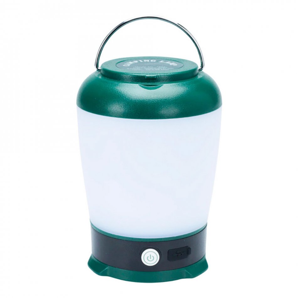 Farol de camping recargable con asa, led smd, 3 modos de luz, abs, batería 18650 li-ion 3,7 v 1200 mah incluida no reemplazable, función powerbank 5 v 1,0 a max, tiempo de carga 3 h aprox, tiempo de uso al brillo máximo 3,5 h aprox incluye mosquetón, color verde 13 x 9 x 9 cm
