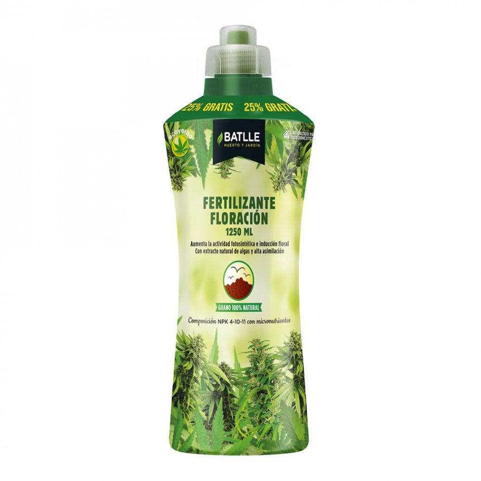 Fertilizante ecoyerba para floracion 1250ml 710563unid batlle. elfertilizante floración es un complejo nutritivo de alta asimilación en base a vitamina b1, extracto natural de algas y guano 100% natural, pensado para promover una rápida y cuantiosa inducción floral, ya que estimula el proceso fotosintético y de captación de energía, consiguiendo frutos más grandes, con más aroma y más sabrosos en un menor espacio de tiempo. su formulación en base orgánica está también pensada para mejorar la asimilación y las defensas naturales.