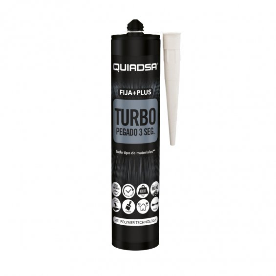 Cartucho de adhesivo elástico de polímero, sujección inmediata 3 segundos, secado en 20 minutos, resistente al moho, interior/exterior, no merma, no amarillea, pintable, superficies húmedas. para metales ferreos o no, paneles, tejas, espejos, azulejos, canalizaciones, etc temperatura aplicación entre 5° y40°c resistencia a la temperatura -40° y 90°c. color blanco