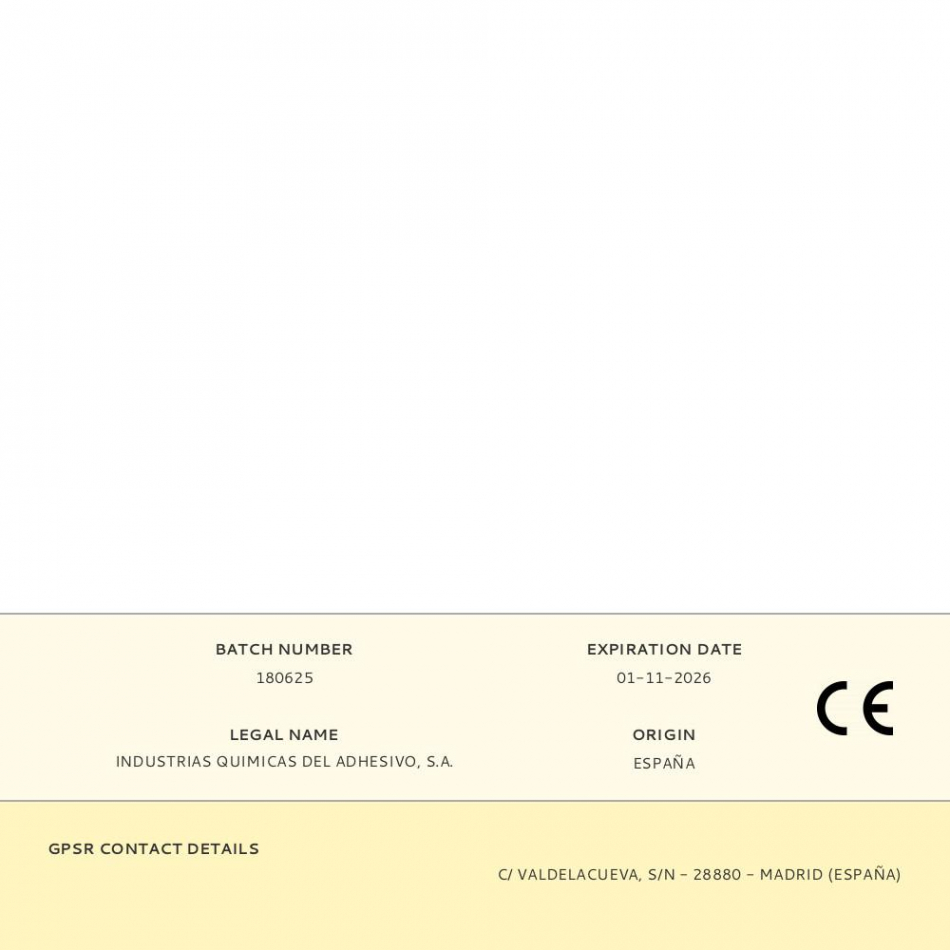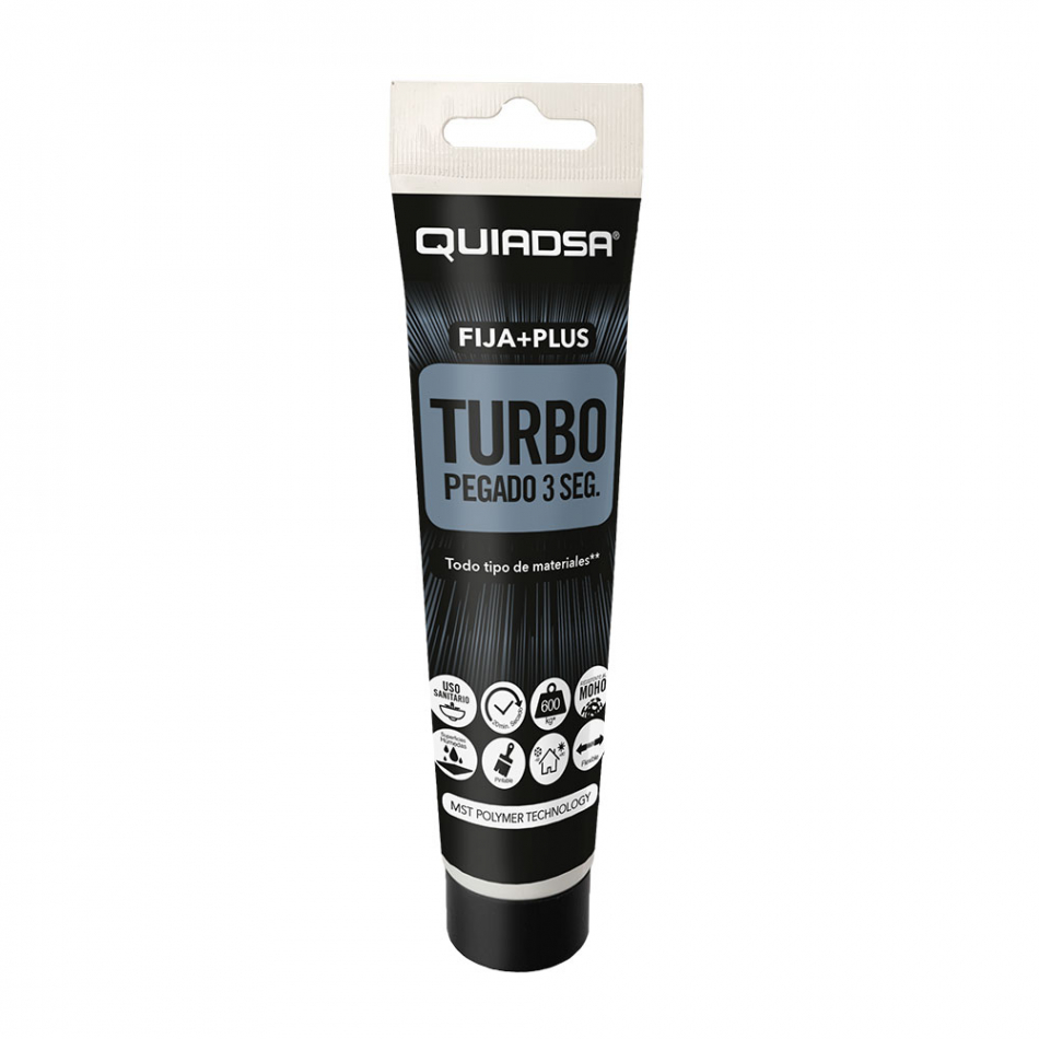 Tubo flexible de adhesivo elástico de polímero, sujección inmediata 3 segundos, secado en 20 minutos, resistente al moho, interior/exterior, no merma, no amarillea, pintable, superficies húmedas. para metales ferreos o no, paneles, tejas, espejos, azulejos, canalizaciones, etc temperatura aplicación entre 5° y 40°c resistencia a la temperatura -40° y 90°c. color blanco