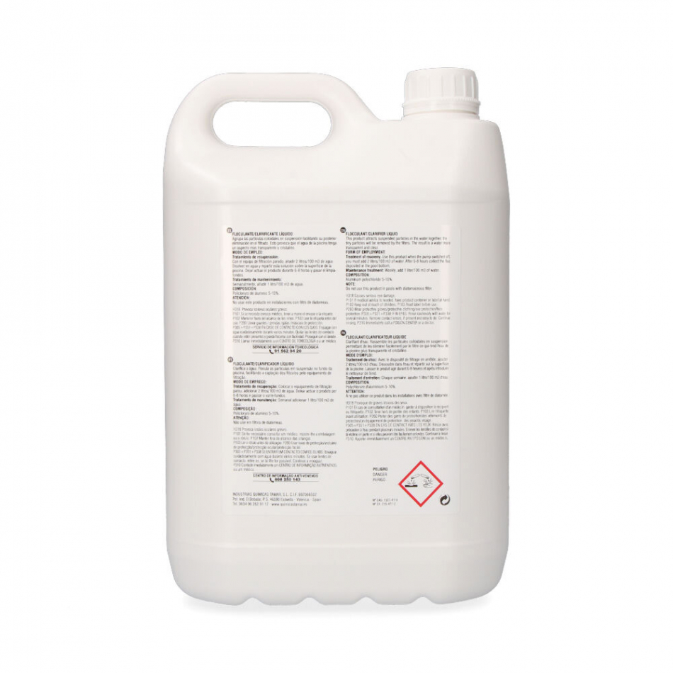 Agrupa las partículas en suspensión para su posterior eliminación en el filtrado, consiguiendo una agua cristalina. al ser líquido, su disolución y acción son inmediatas.