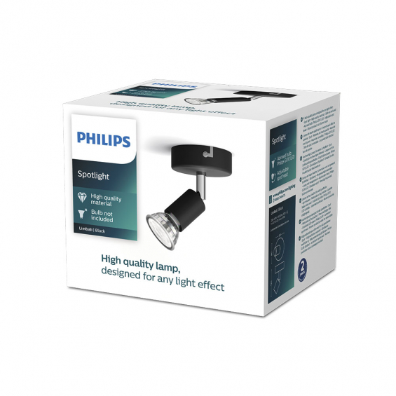 Lámpara 1 foco, limbali, gu10, bombilla no incluida, ip20, 220 - 240 v ~ 50 / 60 hz. cabezal de foco ajustable, material: metal, color: negro. dimensiones ø8 x 13 cm