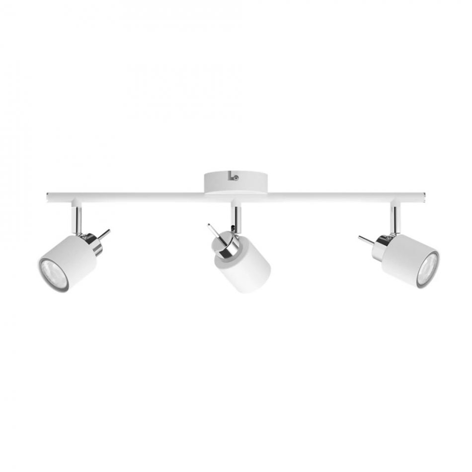 Lámpara 3 focos modelo meranti con casquillo gu10 (bombillas no incluidas). protección ip20. tensión a 220 - 240 v ~ 50 / 60 hz. con cabezal de foco ajustable, material: metal. color blanco. dimensiones:ø 8 x 47,4 x 15,5 cm