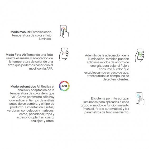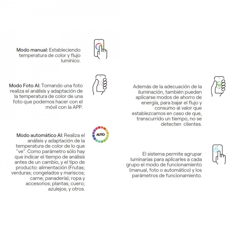 Foco proyector, inteligencia artificial aplicada a la iluminación de tu proyecto, 30 w 2700 k - 6500 k 24° negro. ip20 220-240 vac 50 hz 170 ma, rotacion 360°, inclinacion maxima 90°, incluye sensor controlado con el movil mediante la app caimeta, modo manual modo foto ai y modo automatico ai, aplicable tambien modo ahorro energia, permite agrupar luminarias para que funcionen de la misma manera