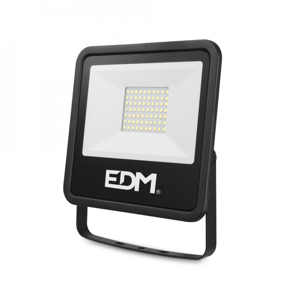 Foco proyector led 50w 4000lm 6400k luz fria ip65 70 leds 19,2x17,5x2,9cm 25.000h 220-240v 50hz clase f. 120°. incluye conector de cables estanco ip68. black series edm