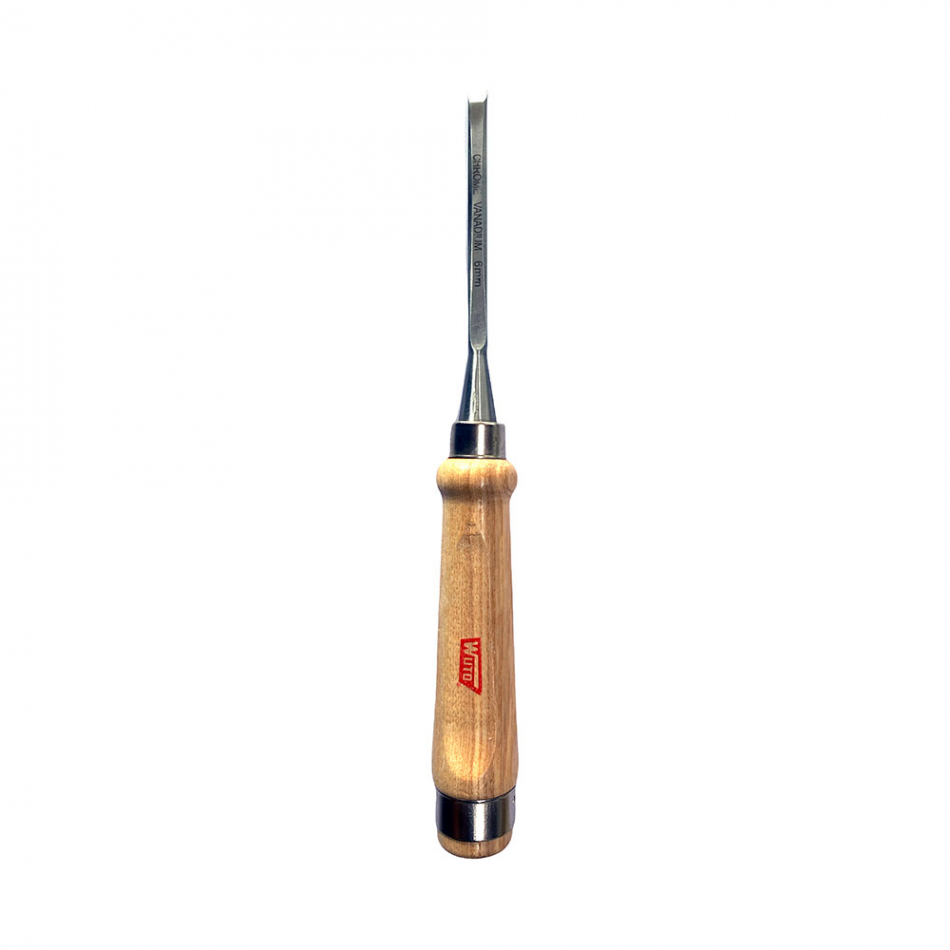 Formón modelo 6. ancho: 6mm. wuto. taladro manual para la realización de orificios sin causar fisuras en la madera. con mango de madera y corte vaciado. presentado en colgador