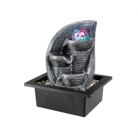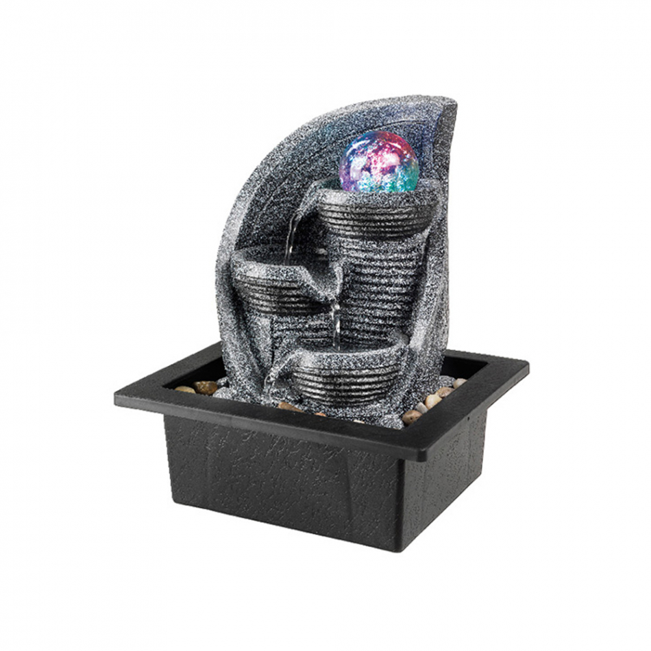 Fuente de agua con bola de cristal con movimiento y led rgb que cambia de colores, cable alimentación 2 m, 220-230 v, ip44, no requiere suministro de agua constante, dimensiones: 21,5 x 18,8 x 25,5 cm