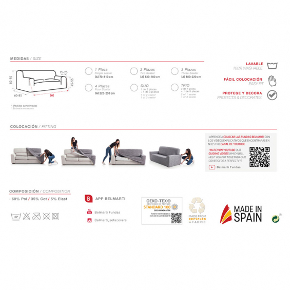 Funda teide marfil elástica para sofa 3 plazas medidas: 180-220x60-85x80-90cm 002tefm belmarti