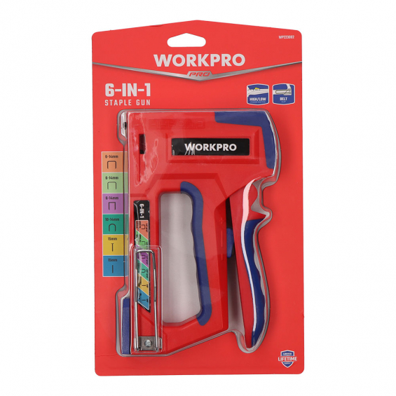 Grapadora 6 en 1 . multifunción 6 en 1, compatible con grapas tipo t21, t50, t25, t20, 18ga y pin. puede satisfacer la mayoría de sus necesidades de fijado sin reemplazar la grapadora. fácil y segura. dos potencias de grapado . diseño ergonómico revestido de goma. azul y rojo