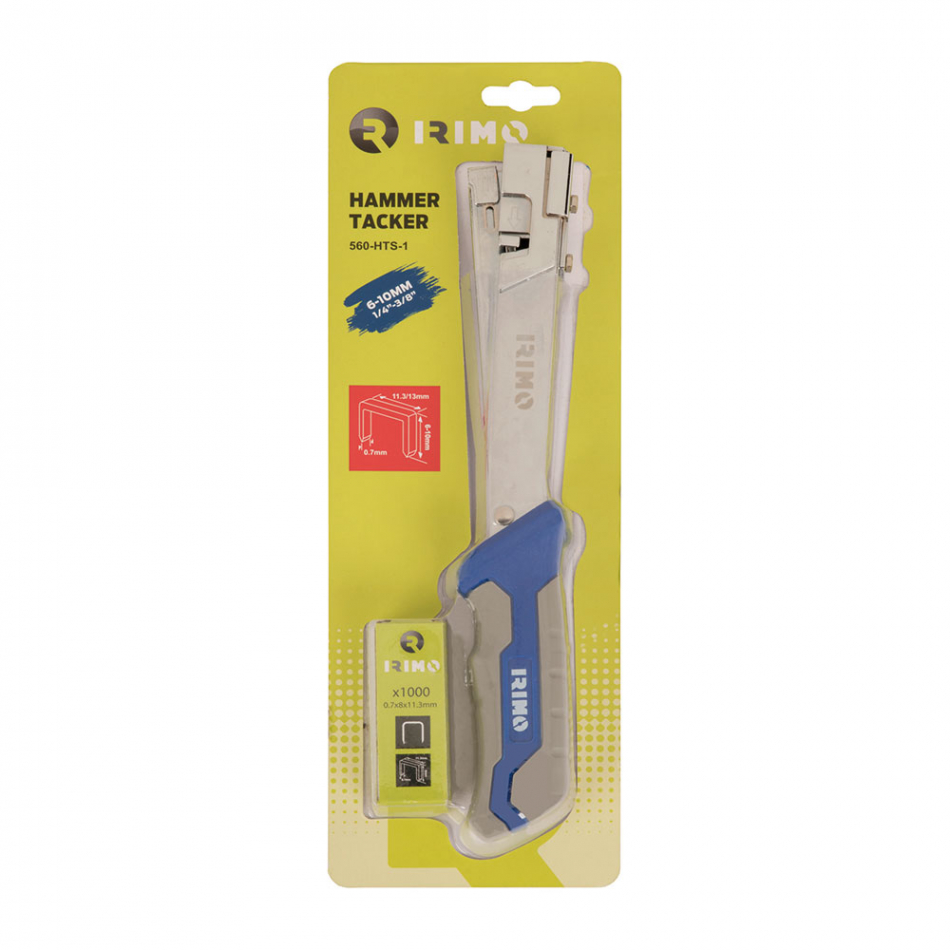 Grapadora martillo+grapas 560-hts-1. grapadora martillo compacta con carcasa de acero mecanismo anti-atasco para un uso continuo y un funcionamiento fiable mango ergonómico para un mejor agarre y manejo compatible con grapas para trabajos domésticos ligeros (0.7): 6-14mm (1/4-9/16") incluye 1.000 grapas de 0,7x8x11,3mm)"
