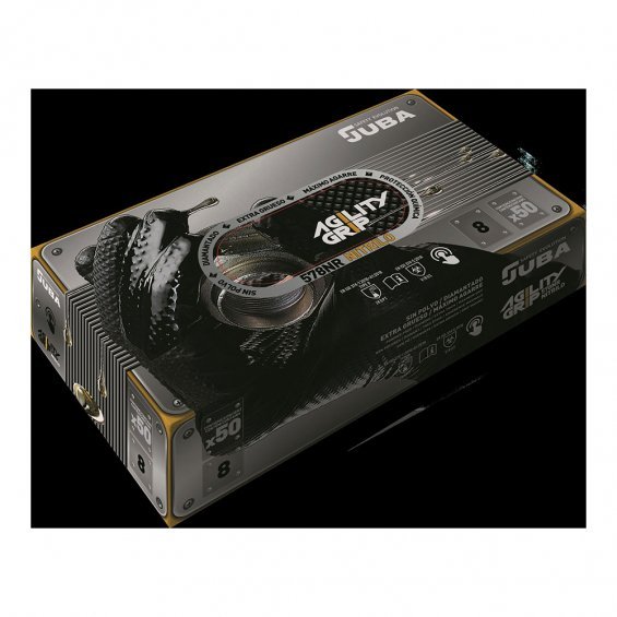 Guante desechable "agility grip" de nitrilo sin polvo, color negro, talla 10. ambidextro, diamantado, extra grueso, máximo agarre, táctil, protección química. usos: galvanizados, montajes ligeros, mantenimiento de vehículos, agricultura y horticultura, limpieza y mantenimiento industrial, tatuadores, peluquerías