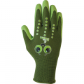 Guante infantil jardinería verde talla 4 años. sin costuras con recubrimiento de látex rugoso en palma. color verde. colaborar en el cuidado del jardín y huerto con los adultos. diversión en la naturaleza