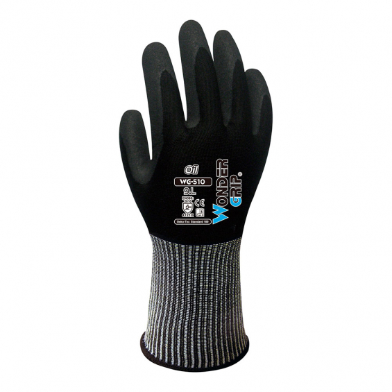 Guante nailon y spandex, doble recubrimiento de nitrilo en palma forro elástico y suave que proporciona flexibilidad y desteridad alta resistencia a los aceites industriales y a la abrasión confeccionado para adaptarse de forma natural de la mano agarre excepcional en aplicaciones mojadas y aceitosas talla 7