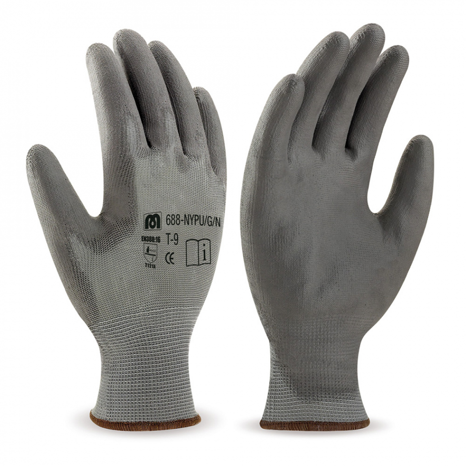 Guantes poliéster gris con recubrimiento de poliuretano gris en388, talla 8