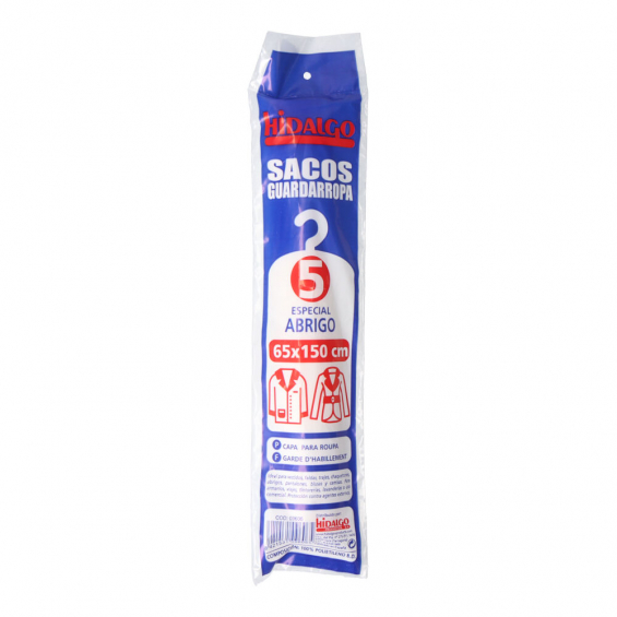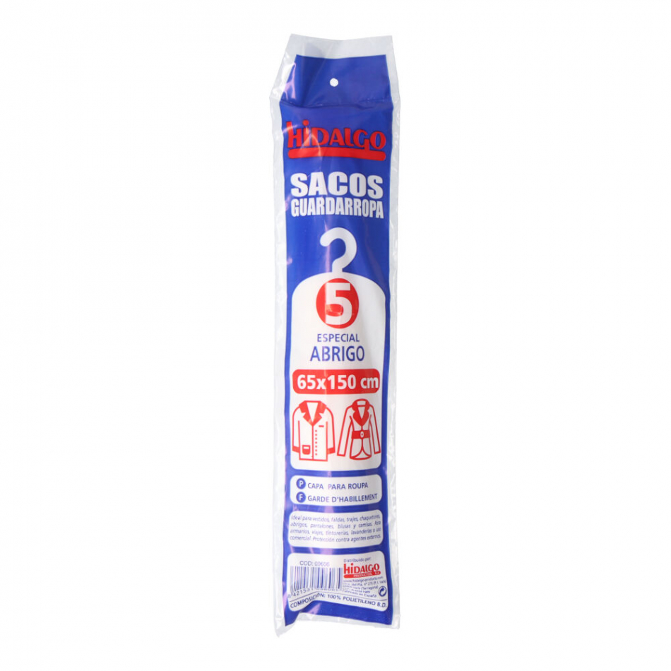 5 sacos guardarropa n°3 abrigo 65x150cm mauris. protege la ropa del polvo, humedad y polillas. 100% poliuretano.producto nacional.