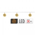 Guirnalda a pilas fija 10 leds con bolas color oro 2,5cm luz blanco calido pilas 2xaa no incluidas ip20 cable transparente 10cm entre bombillas leds 5mm cable alimentación 30cm. distancia entre la primera bombilla y la ultima 1m. largo total: 1,3m