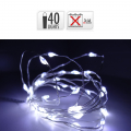 Guirnalda con cable de alambre plateado, 40leds, luz blanca fría, funciona con pilas 3xaa no incluidas, distancia entre leds 5cm, cable alimentación 10cm, distancia entre el primer led y el último 195cm, largo total: 205cm