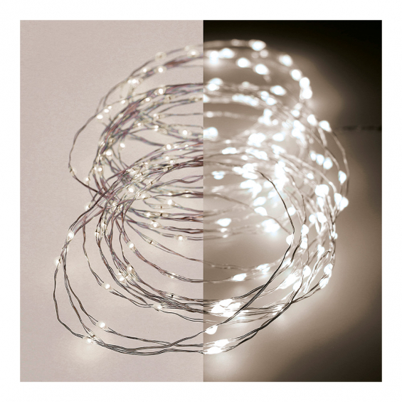 Guirnalda micro led parpadeante 180 leds luz calida. 8 funciones control de memoria. cable plateado. ip44 transf. cable alimentacion: 5m. distancia entre primera y ultima bombilla 9m largo total: 14m distancia entre bombillas 5cm bombillas no reemplazables.
