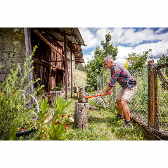 Hacha de hendidura 1400g. el equilibrio entre la cabeza de corte de 1kg y el mango ligero y largo permite aprovechar al máximo el peso de la cabeza y lograr velocidad, fuerza y precisión en el corte. la cabeza está hecha de acero al carbono con revestimiento antifricción. el mango es ergonómico, gracias a la forma y a los insertos antideslizantes, y ligero: su estructura está vacía por dentro para reducir las vibraciones causadas por el impacto con la madera. la parte posterior de la cabeza de corte también se puede utilizar como práctico martillo. está equipada con presilla, para ser transportada cómodamente y en total seguridad. - peso: 1,4kg - peso de la cabeza: 1kg - longitud: 60cm. stocker