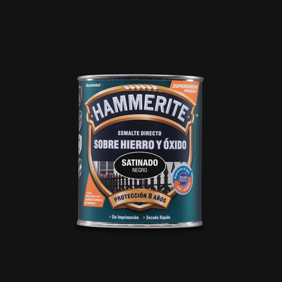 Hammerite esmalte metalico negro satinado 0.750l aplicacion directa sobre hierro y oxido sin imprimacion proteccion antioxido hasta 8 años secado rapido 1 hora uso exterior