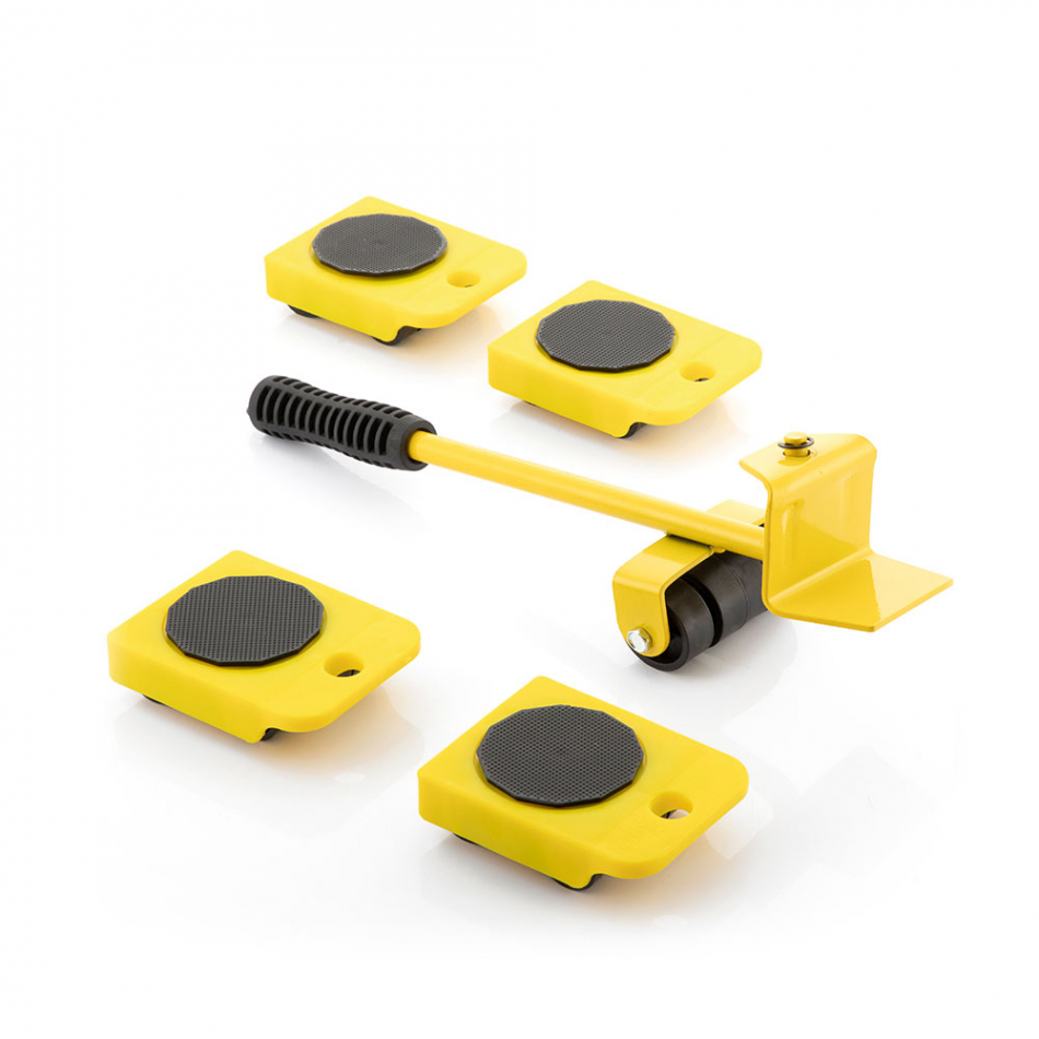 Herramienta de elevacion y transporte v0103237 innovagoods. una versátil y resistente herramienta que permite mover con facilidad objetos pesados en el entorno doméstico, como muebles, cajas pesadas, electrodomésticos, etc. gracias a su original e innovador diseño multifunción, permite levantar, colocar, deslizar, ajustar y nivelar con total comodidad. se adapta completamente a la dirección de transporte deseada de forma sencilla con el mínimo esfuerzo, ya que consta de mango elevador ergonómico y antideslizante con capacidad para girar hasta 180° y de 4 piezas de soporte con ruedas que pueden girar hasta 360°. la palanca elevadora soporta hasta 200kg y las piezas con ruedas soportan hasta 150kg. además, al ser una herramienta manual compacta y ligera, se puede transportar y guardar fácilmente, ya que apenas ocupa espacio. se recomienda no utilizarlo en suelos rugosos, en pendientes o en rampas. material: hierro, medidas aprox.: 35x9x10cm.