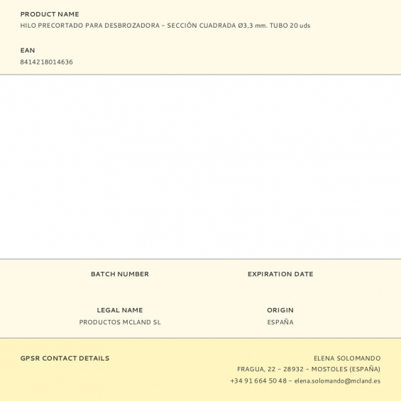 Hilo precortado para desbrozadora - sección cuadrada ø3,3 mm. tubo 20 uds