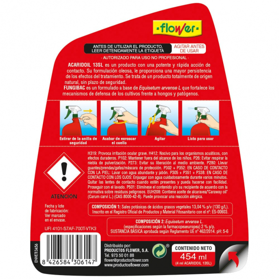 Insecticida fungicida acaricida para plantas, con acción preventiva y curativa frente a hongos, araña roja y otros ácaros, con un gran efecto de choque. 450 ml