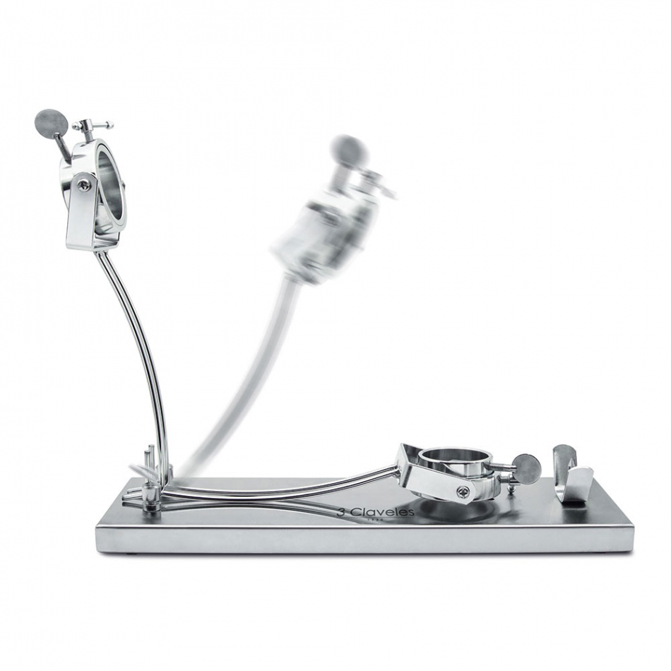 Jamonero con cabezal giratorio 3 claveles. fabricado en acero inoxidable de alta calidad, este jamonero será el centro de atención en tu mesa. con topes antideslizantes y facil sistema de rotación será muy fácil manipular el jamón. además. su plegado fácil servira para ocupar menos espacio en tu cocina a la hora de almacenarlo. acero inoxidable. dimensiones: 39x50x16,5cm (alto/ancho/fondo).