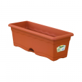 Jardinera con plato integrado color terracota 80x20cm. (ancho/fondo) pensada para uso en exteriores por su alta resistencia a los rayos solares, su robustez y su textura