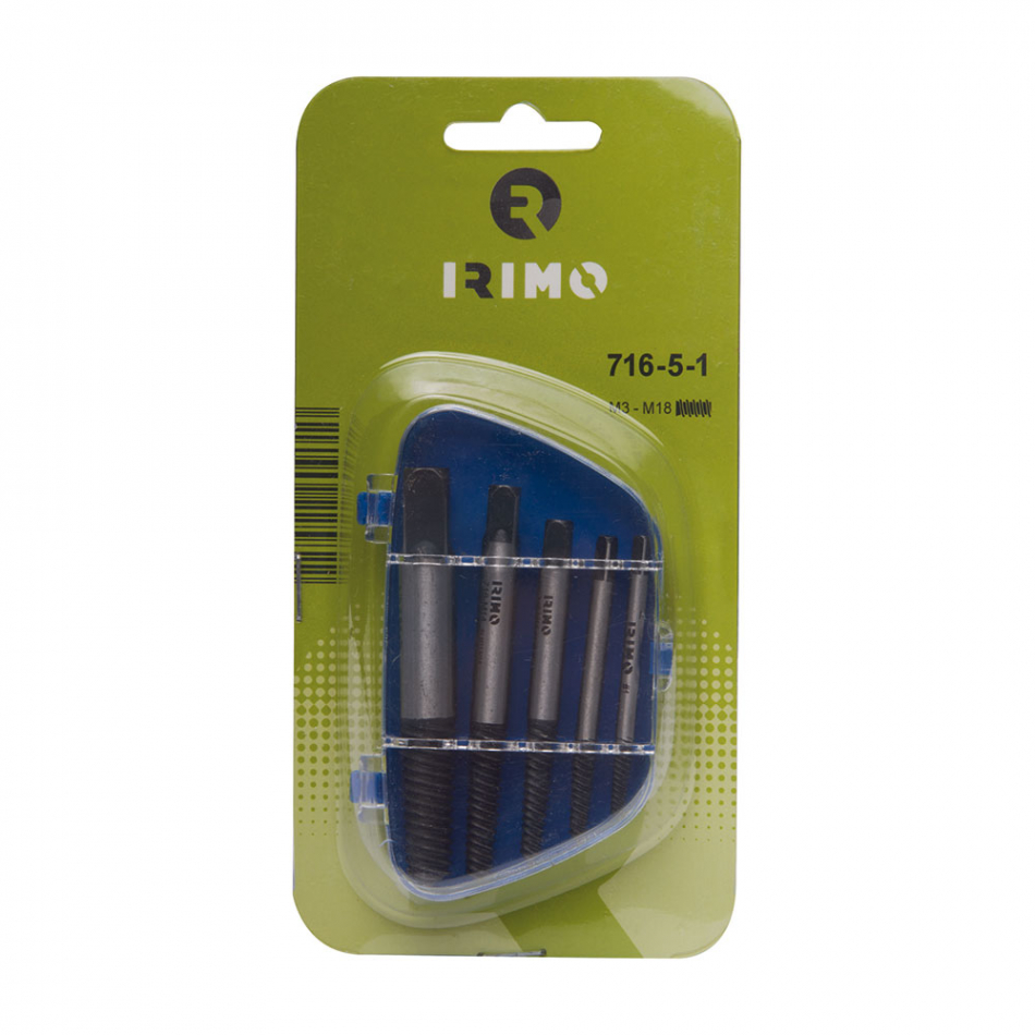 Juego de 5 extractores de espárrago (1420-1421-1422-1423-1424) 716-5-1. para extraer tornillos, espárragos y tubos rotos. desde m3-6 a m14-18. acabado: cromado.