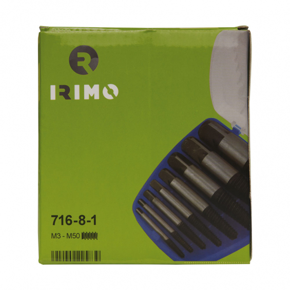 Juego de 8 extractores de espárrago (1420-1421-1422-1423-1424-1425-1426-1427) 716-8-1. para extraer tornillos, espárragos y tubos rotos. desde m3-6 a m30-45. acabado: cromado.